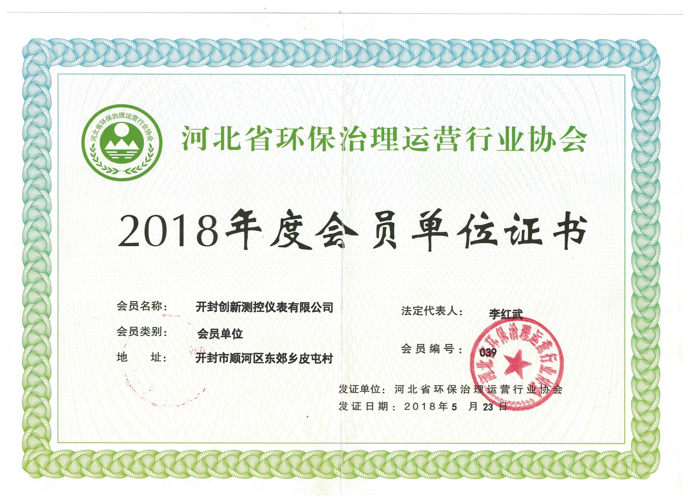 2018年度會員單位證書